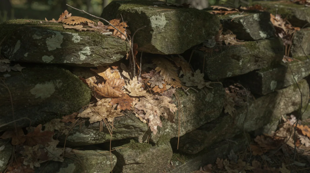 • Stone walls bordering lawns (these harbor leaf litter and rodent burrows)